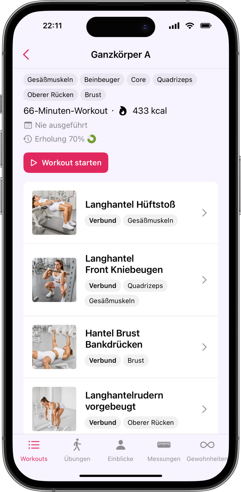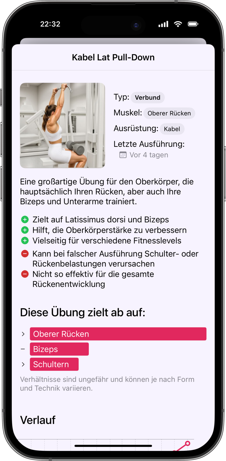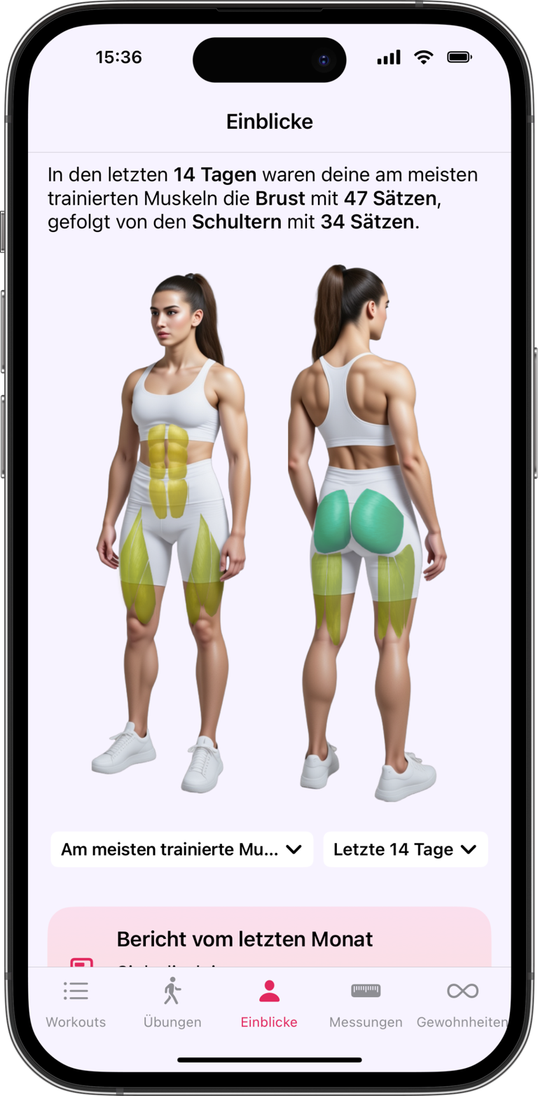 Sieh genau, welche Muskeln du trainierst — und welche mehr Liebe brauchen.