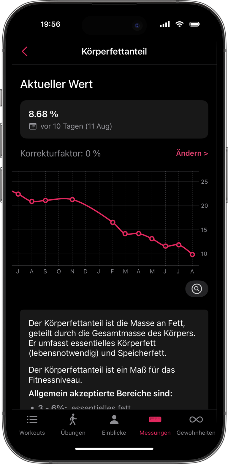 Synchronisiere Körperfett‑%, BMI, Magermasse und mehr automatisch.