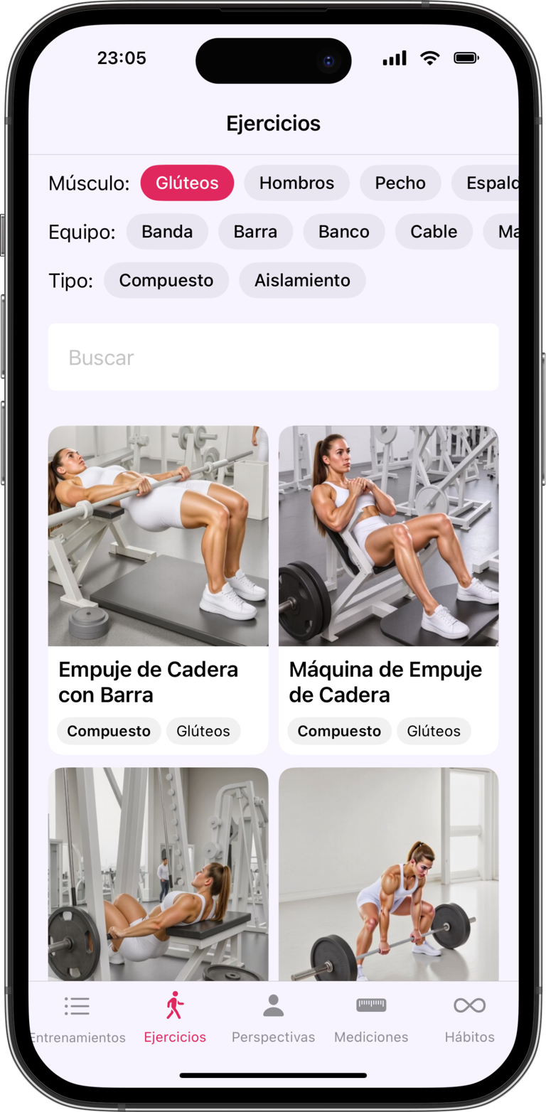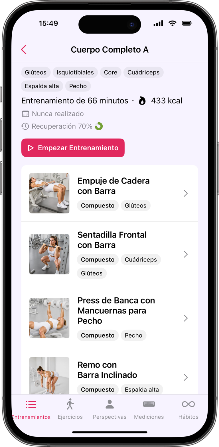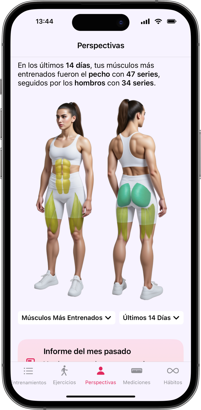 Mira exactamente qué músculos estás entrenando — y cuáles necesitan atención.