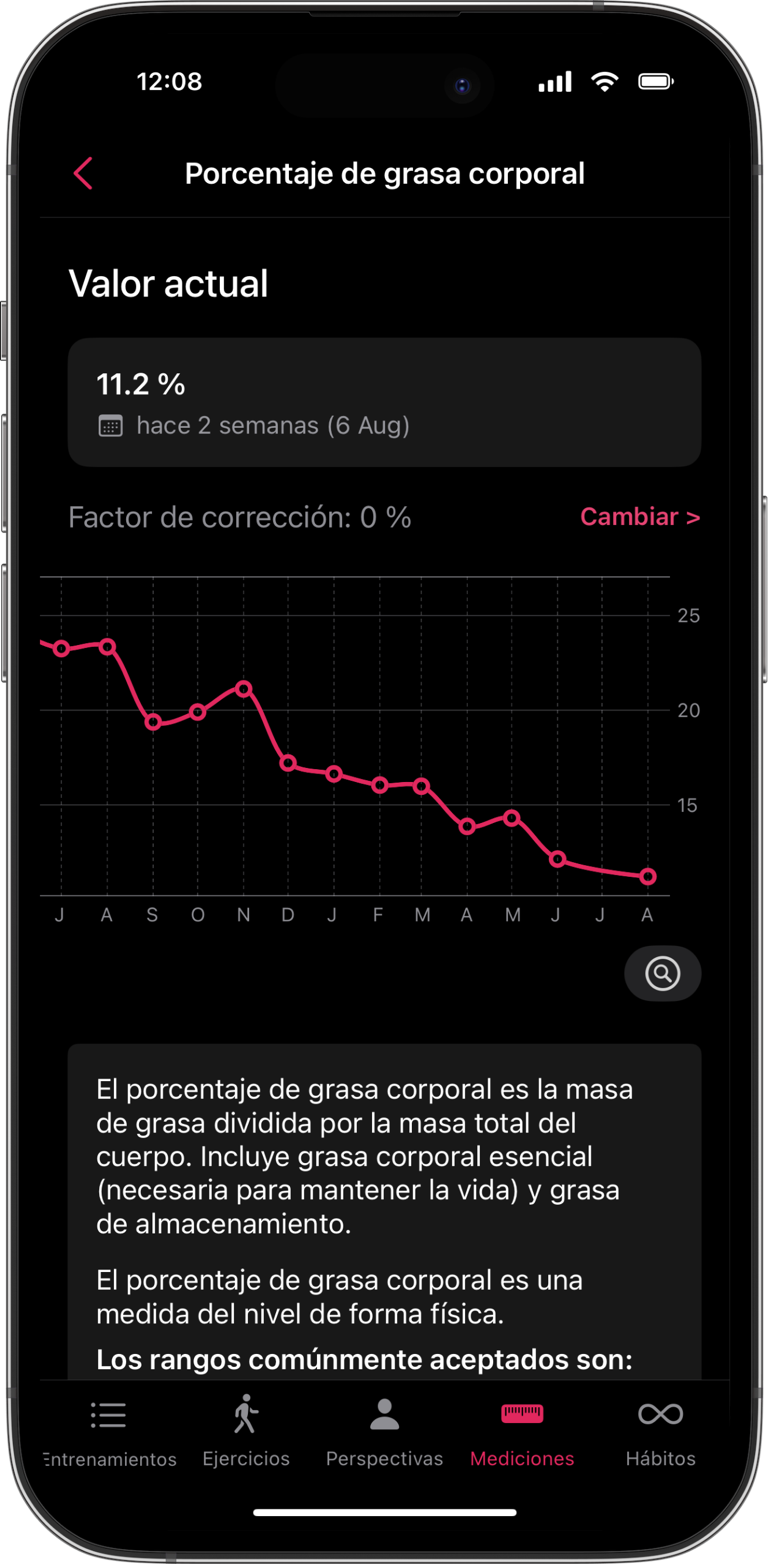 Sincroniza automáticamente % de grasa corporal, IMC, masa magra y más.