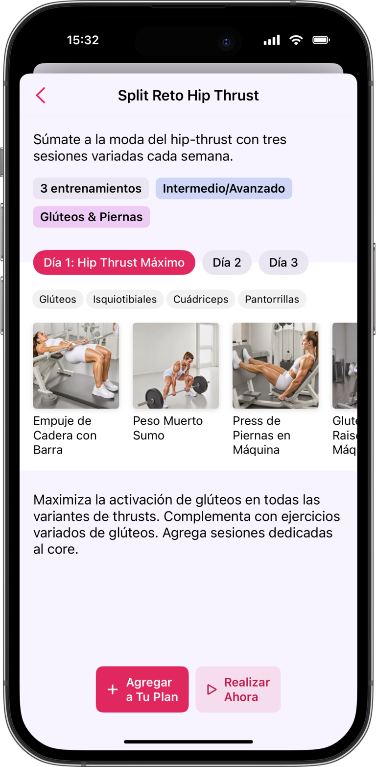 Interfaz elegante y colorida diseñada para sentirse como tu propio espacio de entrenamiento.